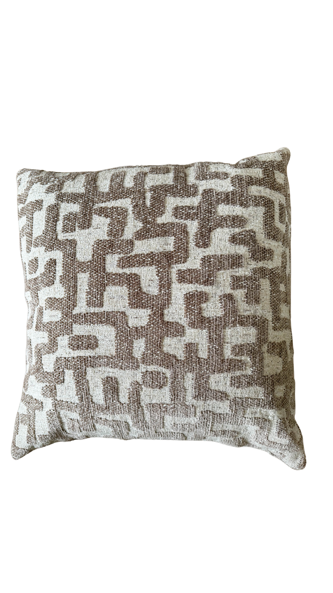Super mooi groot kussen met subtiele print. In de kleur beige/bruin.